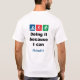 Gear for the triathlete! Blue swim icon, 3.8 kilometers; red bike icon, 180 kilometers; green run icon, 42.2 kilometers. “Nobody made me do this”, it says in the front. “Doing it because I can” at the back. Customize both of these texts, and add your name or initials. The distances are in the metric version. Imperial version coming soon!