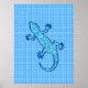 Gecko patterned with a tribal batik textile design - light chambray blue with shades of denim blue and white, outlined in indigo with a light chambray and denim blue shippo pattern background poster