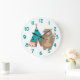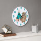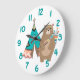 Tribal Bear and Tipi Teal Number Large Clock