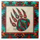 Brighten Your Home with this Unique "One of a Kind" Tribal Bear Paw Ceramic Tile! It Features a Native American Tribal Bear Paw on a Tan Sandstone Background...Surrounded by a Southwest Border in Turquoise, Orange & Black!