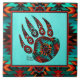 Brighten Your Home with this Unique "One of a Kind" Tribal Bear Paw Ceramic Tile! It Features a Native American Tribal Bear Paw on a Turquoise Background...Surrounded by a Southwest Border in Turquoise, Orange & Black!