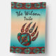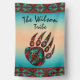 Welcome Friends and Family with this Unique "One of a Kind" Tribal Bear Paw House Flag! It Features a Large Native American Tribal Bear Paw, which Represents Protection and Good Health on a Turquoise and Orange Sunset Background...Surrounded by a Southwest Turquoise, Orange and Black Borders!