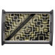 Black and gold geometric pattern with tribal and glitter glam mix - gold trim black ribbon space for personalize text. Add a name, or a favorite quote, a reminder, or even a business name to this wooden serving tray. Makes a great gift.