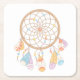 Tribal Boho Dreamcatcher on White Square Paper Coaster