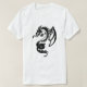decorative black ink design of a dragon spreading his wings in tribal tattoo style on a t-shirt.