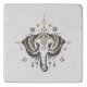 Cute tribal elephant illustration using gold and gray tones on a white background.
