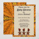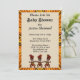 Baby shower Invitation. Abstract in golden shades. Colors of yellow, orange, and brown. Tribal dancers at the bottom of the front card. Design all zigzags to the center. Let's go tribal with this trendy abstract design on the front and back of this flat card. Replace the information with your own. All customization is available for the front and back of the card.