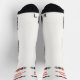 A colorful red frame for your name (in matching red color) is located on the outside of the calf of white these high-performance athletic socks. It works well with one or two lines.