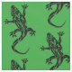 a decorative pattern design of abstract tribal style geckos, lizards or dragons on green fabric