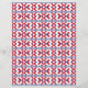 Tribal geometric red, blue, and white pattern