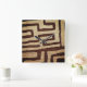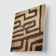 This wall clock boasts a geometric Kuba cloth pattern, presenting a seamless mix of beige and tan hues that enhance any room's aesthetic. Made from premium Grade-A acrylic, the 10.75-inch square clock is vividly printed through the AcryliPrint®HD process. It features a silent operation mechanism and comes with a pre-installed slot on the back for straightforward mounting. Ideal for indoor settings, the clock operates on a single AA battery, which is not included.