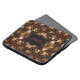 Geometric Tribal Batik inspired fusion in earthy colours of orange, gold yellow and energizing glow pattern laptop case with customizable are for two lines of text, suitable for personalizing with name, business names or favourite / inspiring and/or motivational quotes