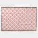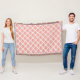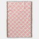 A geometric tribal key and angular cut out style patterned throw in warm coral orange pink and white, or select your own background color. Designed by Sarah Trett. Would look great in a bedroom, lounge.