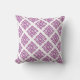 A geometric tribal key and angular cut out style patterned pillow in fashionable radiant orchid purple pink and white. Designed by Sarah Trett. Would look great in a bedroom, lounge.