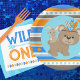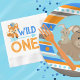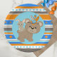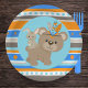 Blue Tribal Patterned Woodland Bear and Bunny Rabbit Party Paper Plates in Blue, Orange and Brown. Perfect for any forest animal celebration, but custom made to match our "Wild One" First Birthday One Happy Camper Collection.