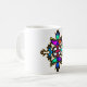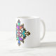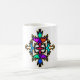 A vibrant ceramic mug featuring a colorful tribal cross design. This unique artistic pattern brings a bold and modern energy to your kitchen or office."