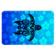 Black tribal Polynesian tattoo style turtle design with a colorful Hawaiian pattern of blue hibiscus flowers. Ocean blue background of Hawaiian Honu sea turtles and hibiscus flowers.