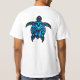 Black tribal Polynesian tattoo style turtle design with a colorful Hawaiian pattern of blue hibiscus flowers.