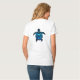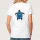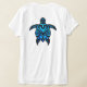 Black tribal Polynesian tattoo style turtle design with a colorful Hawaiian pattern of blue hibiscus flowers.