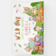Want to add something adorable and unique to your celebration? This tribal-inspired party banner combines the charm of baby woodland animals and safari animals like sweet bears, playful foxes, elephants, zebras, lions, and giraffes, all dressed in stylish tribal costumes. The design features vibrant teepees, feather accents, and earthy tones, creating a fun and artistic look that’s sure to impress.