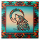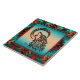 Brighten Your Home with this Unique "One of a Kind" Tribal Wolf Ceramic Tile! It Features a Native American Tribal Wolf Howling at the Moon on a Turquoise and Orange Background...Surrounded by a Southwest Border in Turquoise, Orange & Black!
