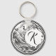 Tribal design featuring a wolf in a crescent moon with shades of black, gray and white. Customize the background color if you want and personalize the initial. By Paxdomino.
