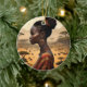 Tribal Woman Watching Over Her African Landscape, Ceramic Ornament