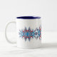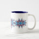 tribal tattoo inspired design in red and blue tones. design extend and placed the mugs full width.