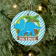 Triceratops Dinosaur; Sky Blue & White Stripes Ceramic Ornament