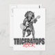 Dinosaur humor featuring a Triceratops playing a electric guitar and the caption Triceratops Rocks.