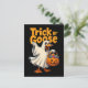 Funny Halloween goose in a spooky ghost costume with a pumpkin bucket full of candy. Perfect for humor-loving fans of Halloween and mischievous birds.