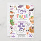 Trick or Three! Cute Purple Halloween 3rd Birthday Invitation