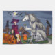 A witch and a werewolf enjoy their Trick or Treat candy on a cool Halloween night.