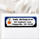 An adorable cartoon dog is dressed up as a ghost in these fun Halloween address labels! The pooch has a jack-o-lantern trick or treat bucket in his mouth, all ready to collect some goodies. Unique Halloween address labels for dog lovers.