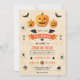 Join us for a spooktacular Halloween party! Embrace the eerie season with pumpkins, spiders, and black and orange Halloween typography on a festive beige and orange background. Customize the date, time, and address to make it your own. Don't miss out on the fun!