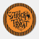 This haunting Halloween sticker features a Trick or Treat design wtih black and orange stripes around the edge.