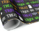 Trick or Treat Halloween wrapping paper with ghosts and bats. the Trick or Treat words are in classic Halloween colors of orange, green or purple. You can make this Halloween pattern smaller or bigger on the wrapping paper.