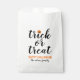 These scary cute Halloween favor bags feature "Trick or Treat" in modern black script with an orange jack o'lantern pumpkin accent.