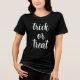 Modern Trick or Treat Modern Script Womens Halloween t-shirt. This t-shirt design feature is text in white script lettering.