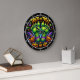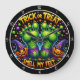 This fun Halloween wall clock features creepy green monster hands, jack-o'-lanterns in witch hats, and vibrant candy corn colors. The playful phrase "TRICK OR TREAT SMELL MY FEET" makes it a perfect, spooky addition to your holiday decor. Edit color of the clocks numbers in the Design tool to your favored colors.