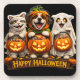 Trick or treat trio whimsical happy Halloween Squa Beverage Coaster
