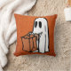 Trick or Treating Ghost Orange Faux Glitter Throw Pillow