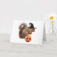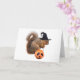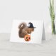 A little squirrel wearing a black witch hat prepares to go trick-or-treating. Cute Halloween card, add your own words to customize.