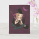 A Goth fairy witch with three black cats out to play under the glow of the crescent moon.