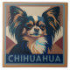 Stylized Chihuahua portrait in bold retro tones, highlighting the breed’s alert expression, large upright ears, and fine long-haired coat. Known as the smallest dog breed, the Chihuahua is spirited, loyal, and full of personality, making it a favorite among toy breed enthusiasts.