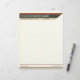 A slanted banner of chestnut red, dark gray, and beige stripes on a buffy background make this letterhead eye-catching, professional, and sharp. The back is plain, in the same buff color as the front.