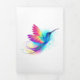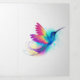 Bright, iridescent, exotic flying hummingbird on white background, painted over with multicolor, watercolor paint. Rainbow hummingbird.