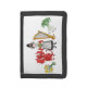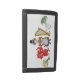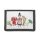 A fun, nylon Trifold Wallet, with a row of Welsh Emblems, a girl in welsh traditional dress, a red dragon, a bunch of leeks, a harp and a bunch of daffodils. Please feel free to change the colour of the wallet or the background if you wish.