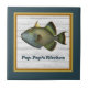 Triggerfish in Deep Teal Gold and Orange with Name Ceramic Tile