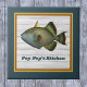 This amazing vintage image of Pseudobalistes fuscus, commonly called the Blue or Yellow-Spotted Triggerfish, is a cheery addition to your home. Customize the text to add your name, or a different room if you display the tile elsewhere. Make sure to personalize the text where indicated. It's bordered in a complementary gold, orange, and deep teal blue.